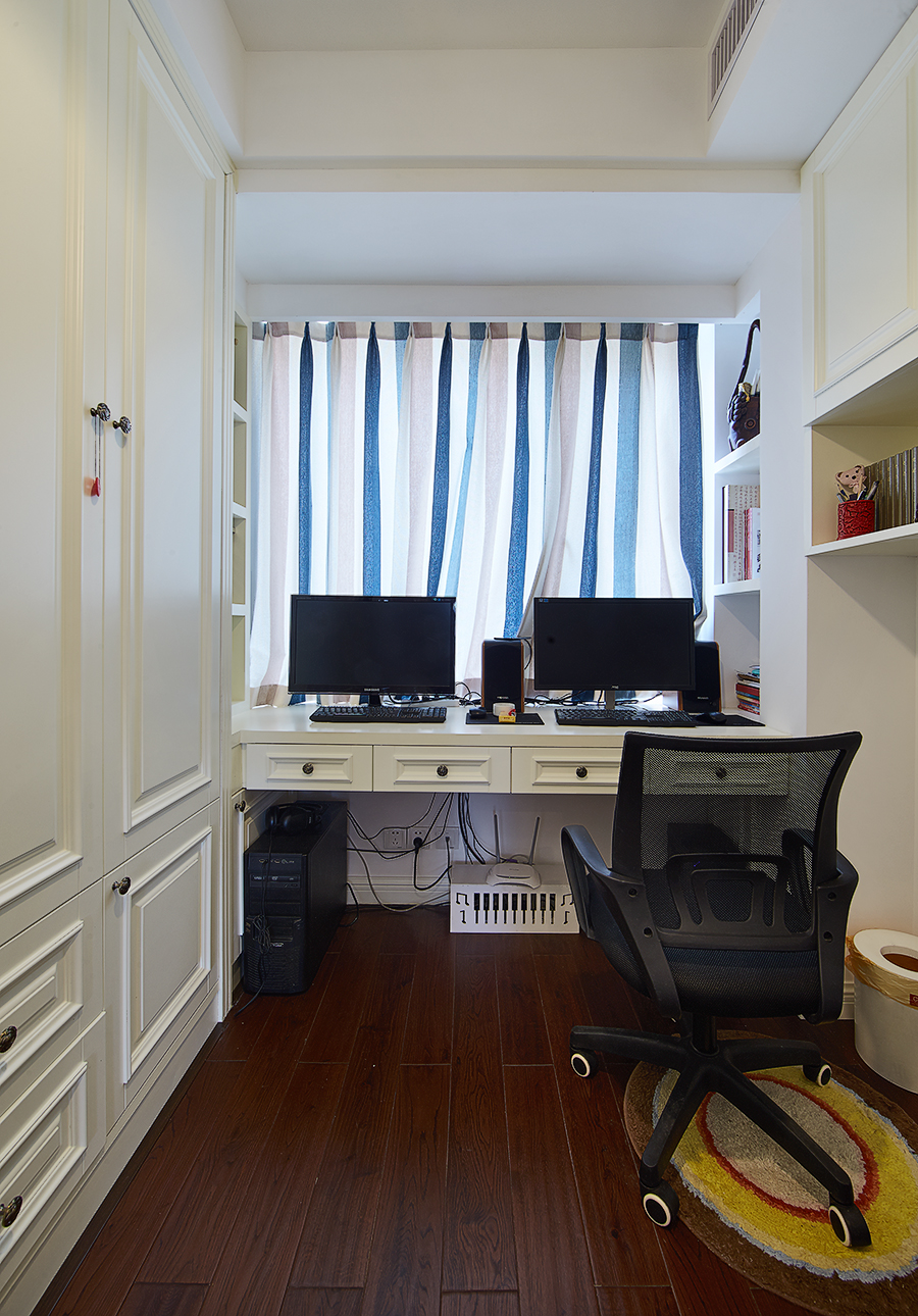 書房是家中電器對照集中之處, 除了電視、空調等少用家電之外,還要設置好電腦、打印機、掃描儀、聲響的電源及網絡接口。