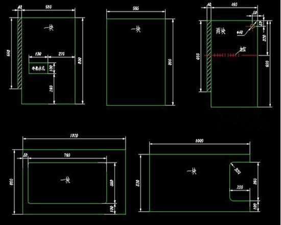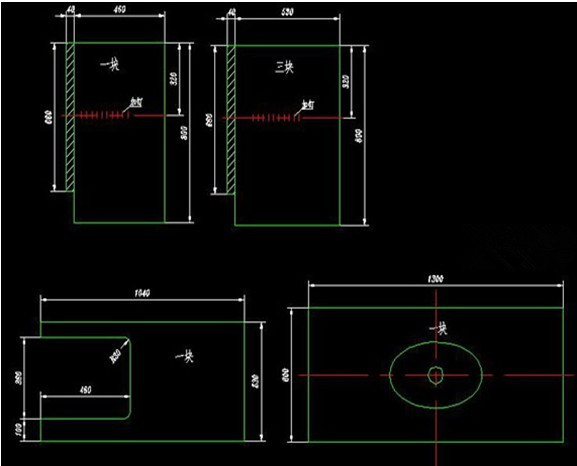 5、如果也做洗面池,確定洗面盆的挖孔尺寸,在洗面池臺面的板上標注出來。