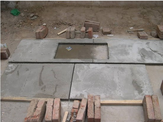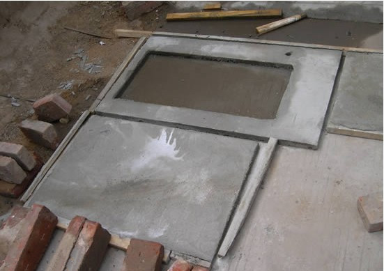 一般制作周期1周左右,即等水泥干透的時間。水泥板中需要加鐵釘(如上圖,用于拖住橫隔板)需要在側面加木龍骨或木板,用于固定合葉。