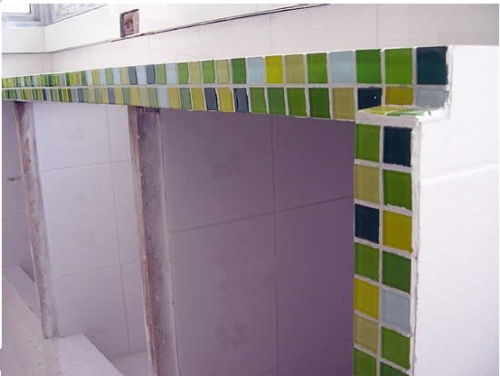 馬賽克比較小,可以剪成任意種組合來使用,正好時候做腰線,花色、品種也很多,用量很少,1米腰線用0.1平方馬賽克。就是鋪貼工錢比較高。