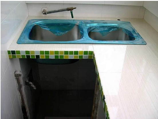 水泥櫥柜的灶具鑲嵌也是一個需要精確計算的問題。在做之前就要定好灶具,量好尺寸,制作的時候按照尺寸留孔。