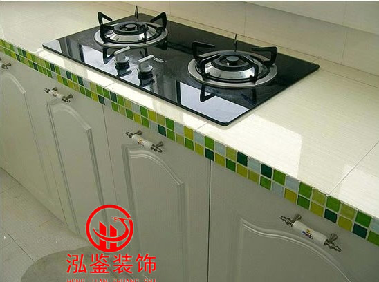 準備材料:瓷磚、腰線、水泥、細沙、填縫劑、馬賽克專用膠。步驟不用講了,泥工師傅都會貼。你把自己的花色講清楚就行了。另外建議櫥柜內部空間很小,貼大磚浪費很大。可以貼20×30的便宜小磚,不影響使用,又節約成本。