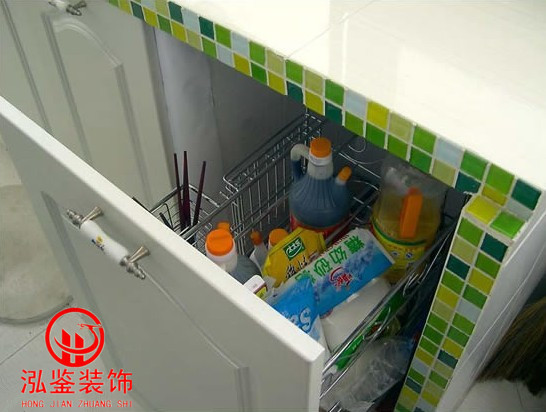 拉籃要事先考慮好安裝的位置。如果習慣用右手,就安裝在灶具的右邊,如果習慣用左手,就安裝在灶具的左邊。當然如果空間足夠大,安裝在灶具的下面也行,就是使用中要注意,拉籃一般一直拉開,會經常碰到。最后還有一點經驗,就是櫥柜的把手。發現把手安裝在門的中間并不方便開門,所以在不影響美觀的情況下,建議把手裝在開門的方向邊上。