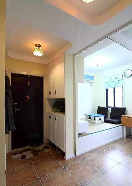 進門的玄關,做了一個很大的鞋柜,冰箱放在了對門的位置,量房熱線:0551-63732980