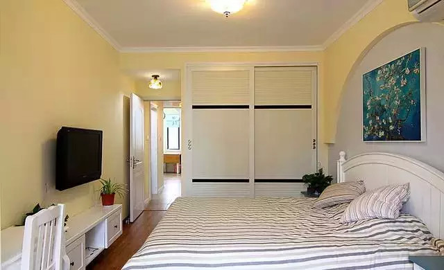 主臥,我們把衣柜的空間往小房間推了,并且把陽臺包了進來,這樣看著是不是感覺不小啊。